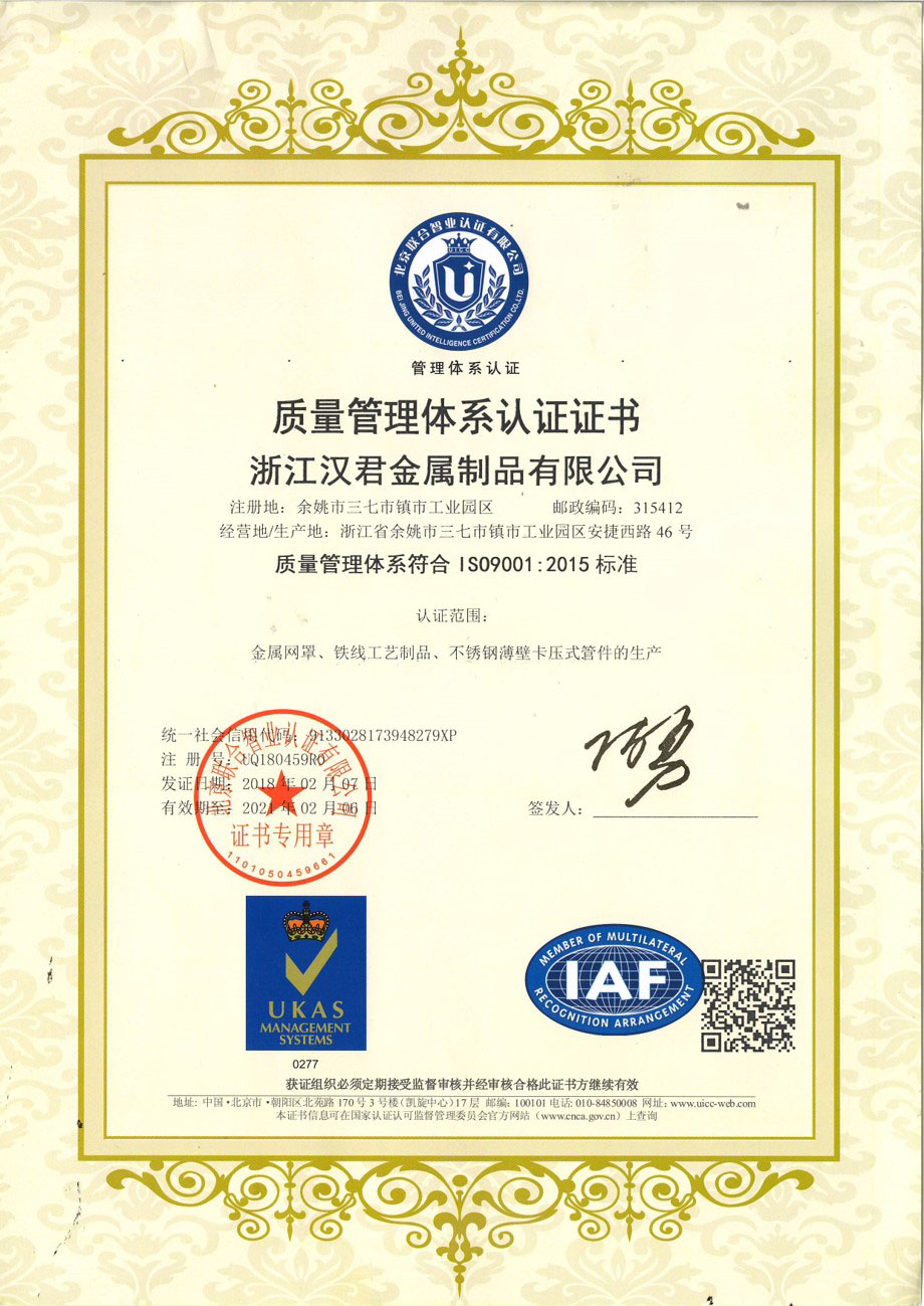 我们的主要产品包括各种规格的钢丝网罩、不锈钢卡压式管件等。